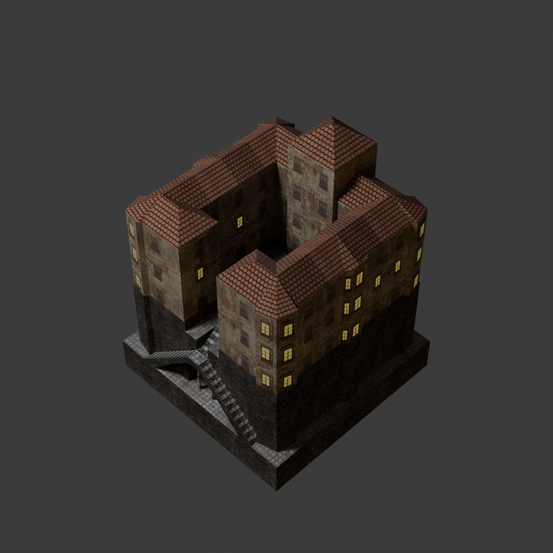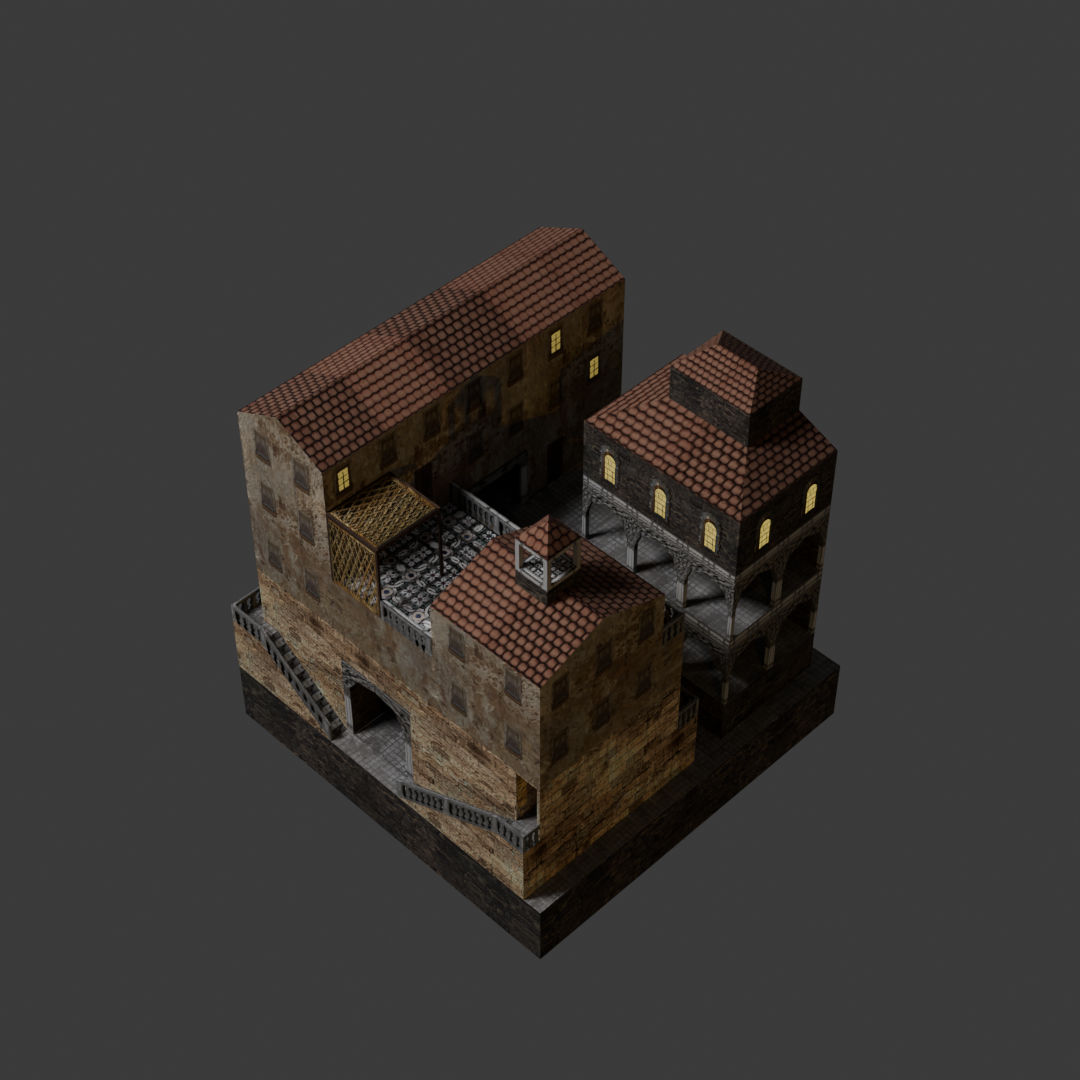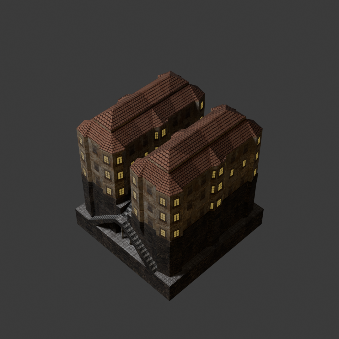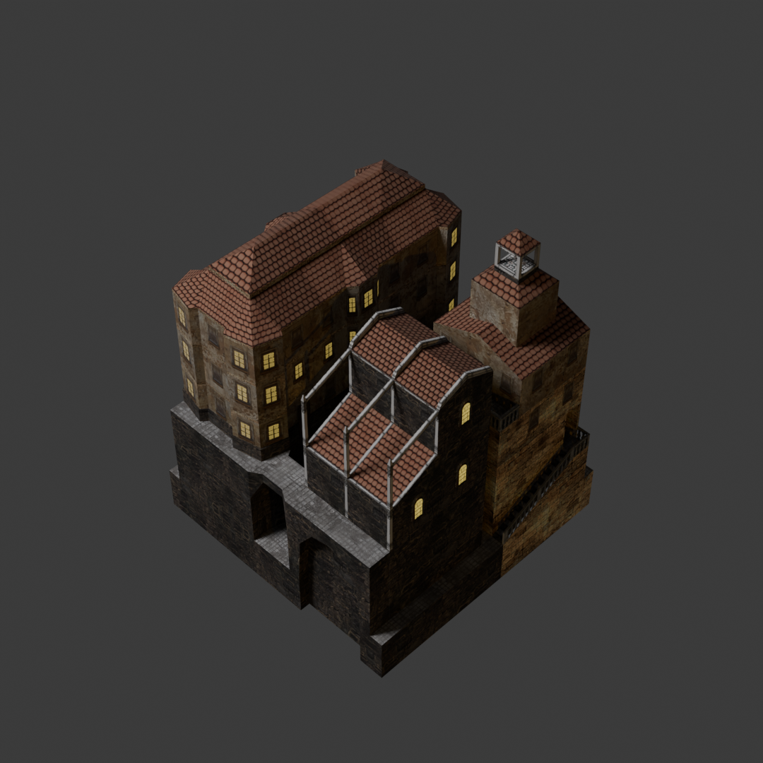 Renders of a house (and character) modelled for a unfinished gamejam project.