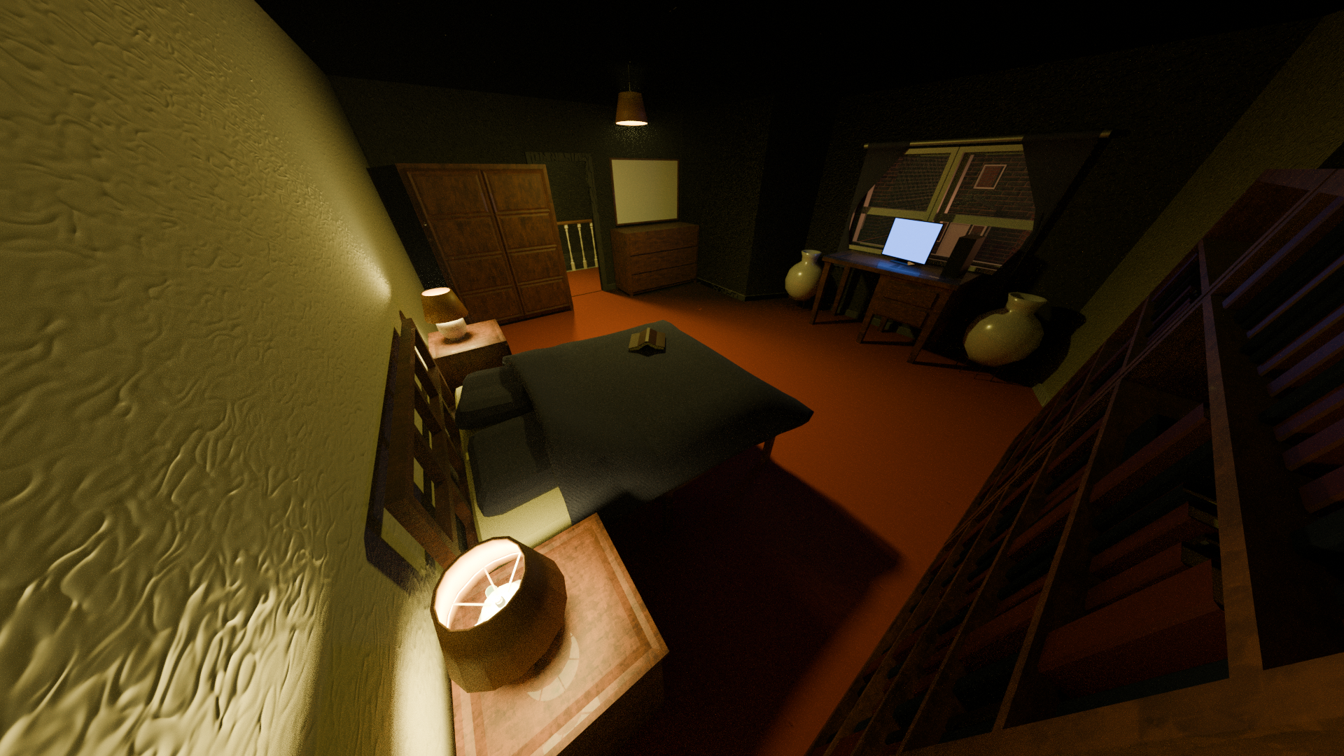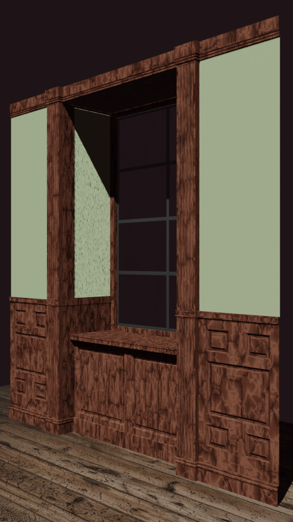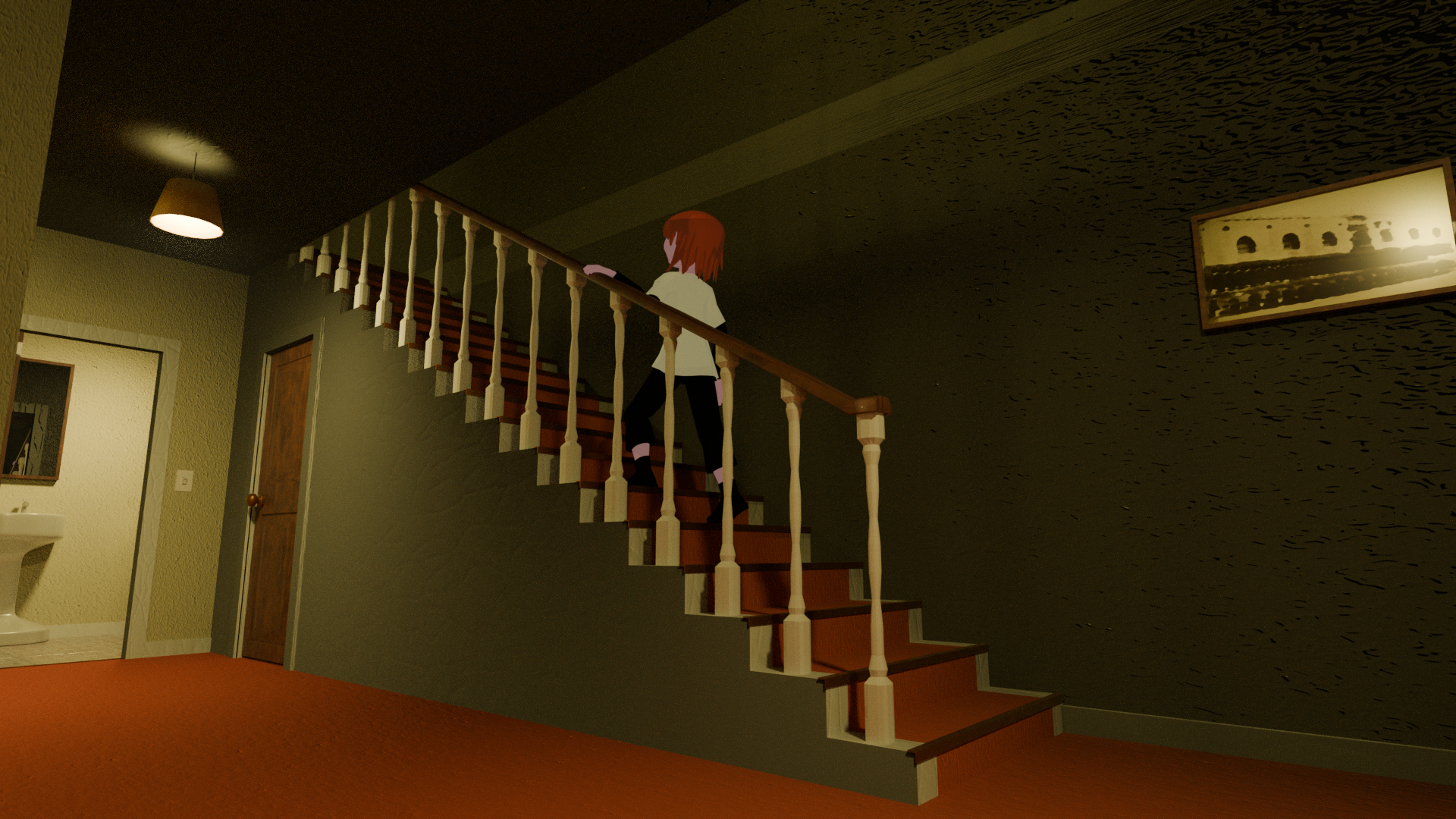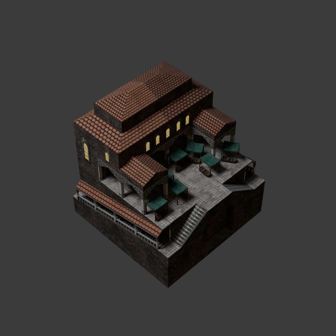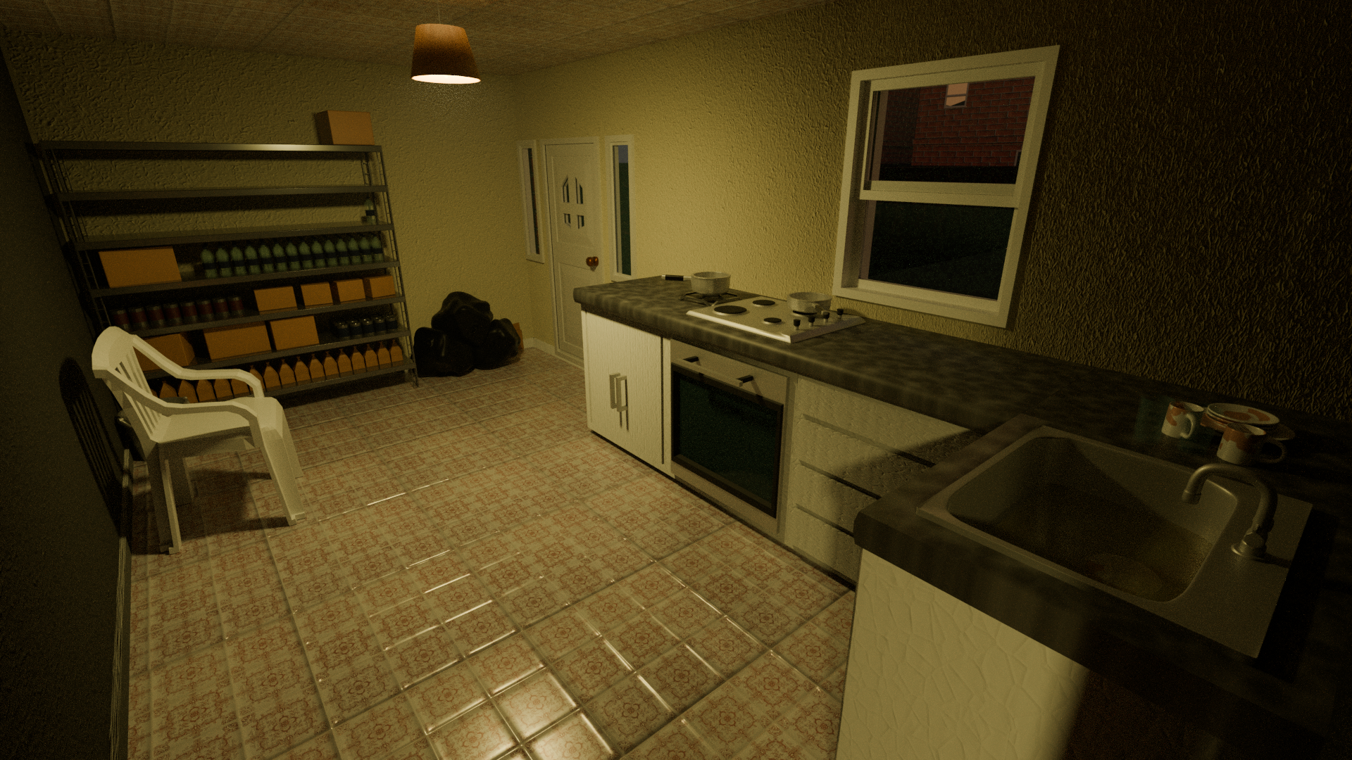 Renders of a house (and character) modelled for a unfinished gamejam project.