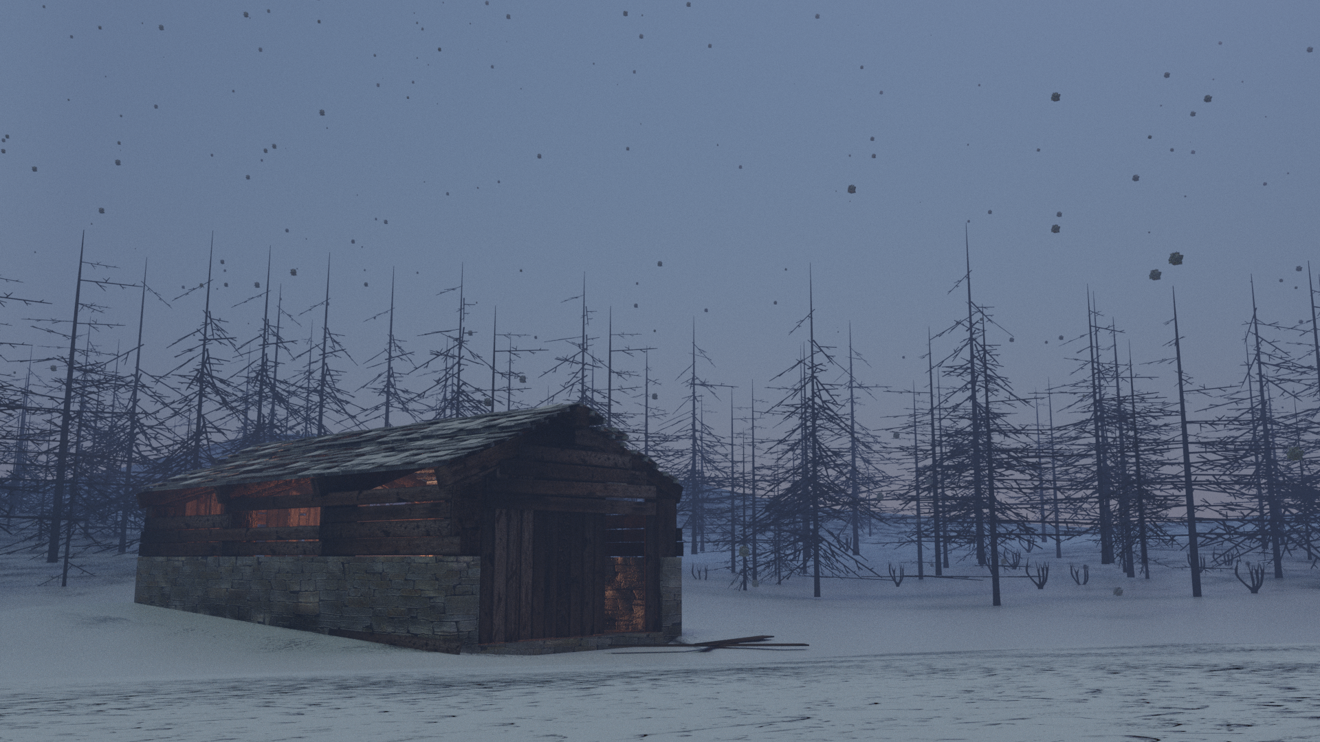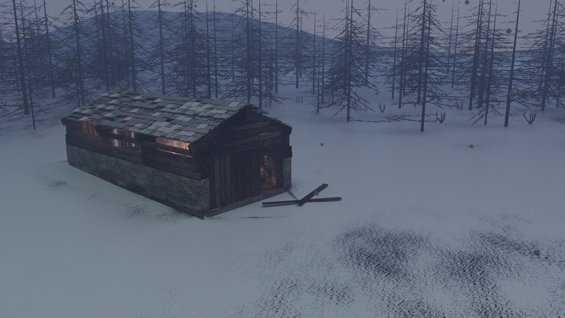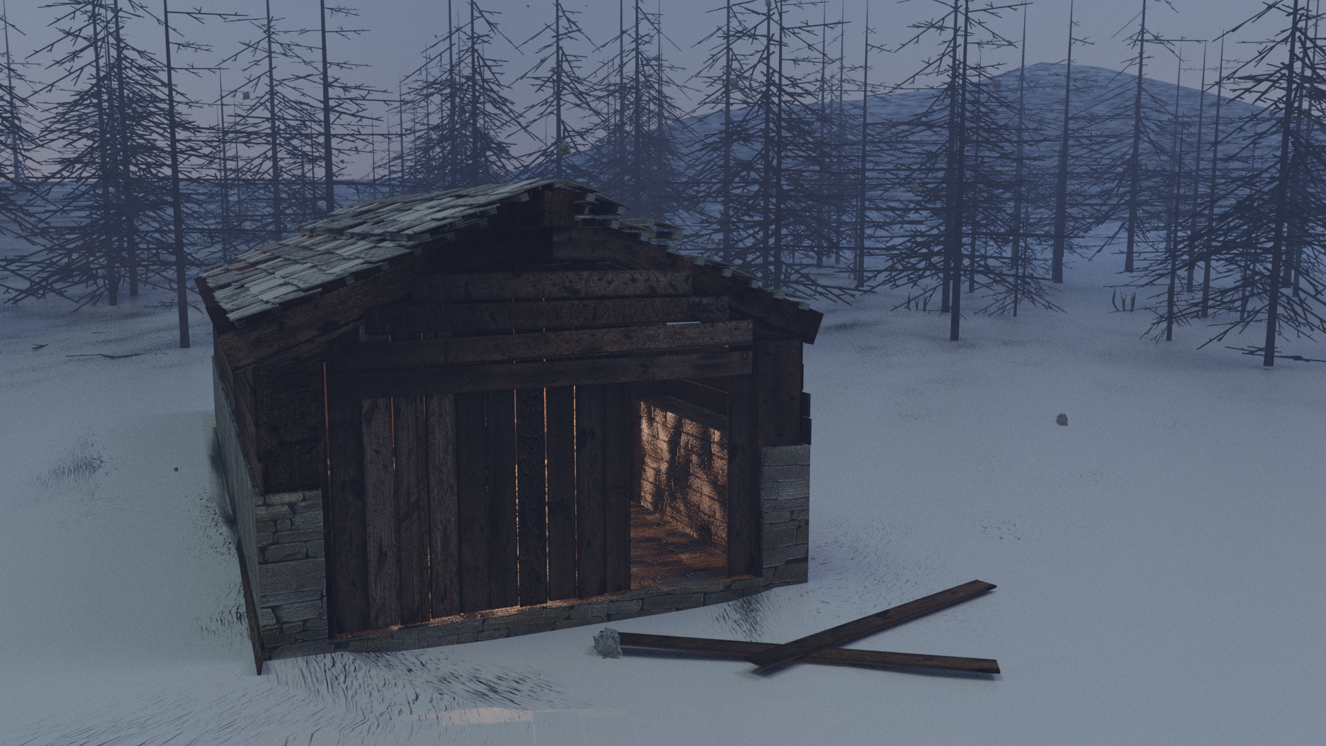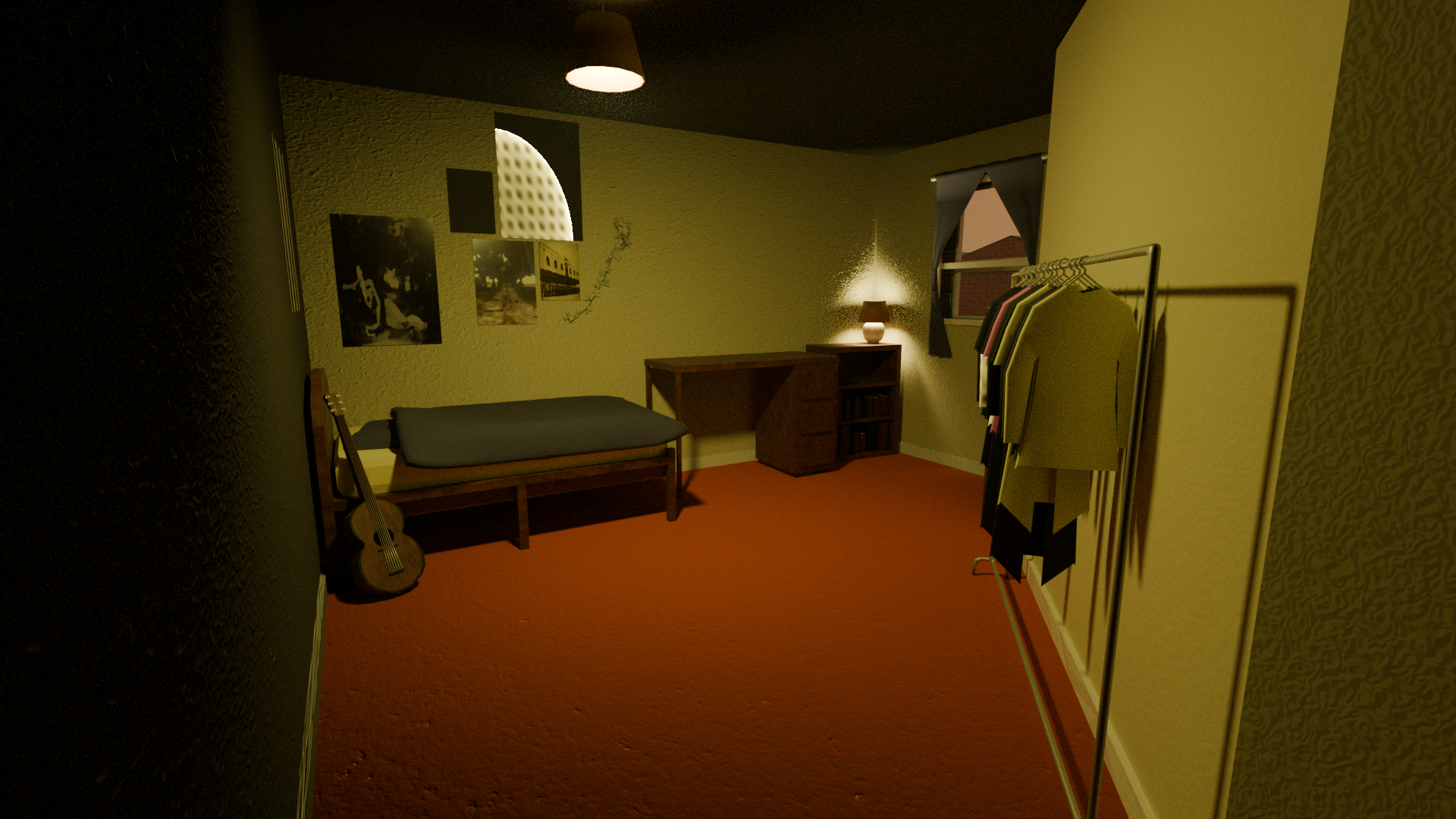 Renders of a house (and character) modelled for a unfinished gamejam project.